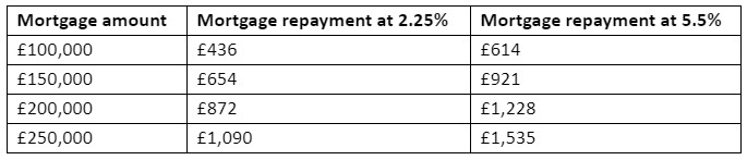 While a rise of 2.75% may seem low, it can have a significant effect on outgoings and the total cost of borrowing. The below table shows how repayments may change for a 25-year repayment mortgage.