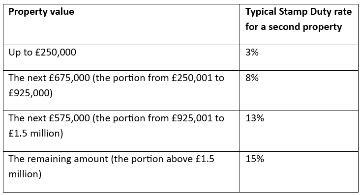 When buying a second property, the first tax charge you’re likely to need to pay is Stamp Duty.